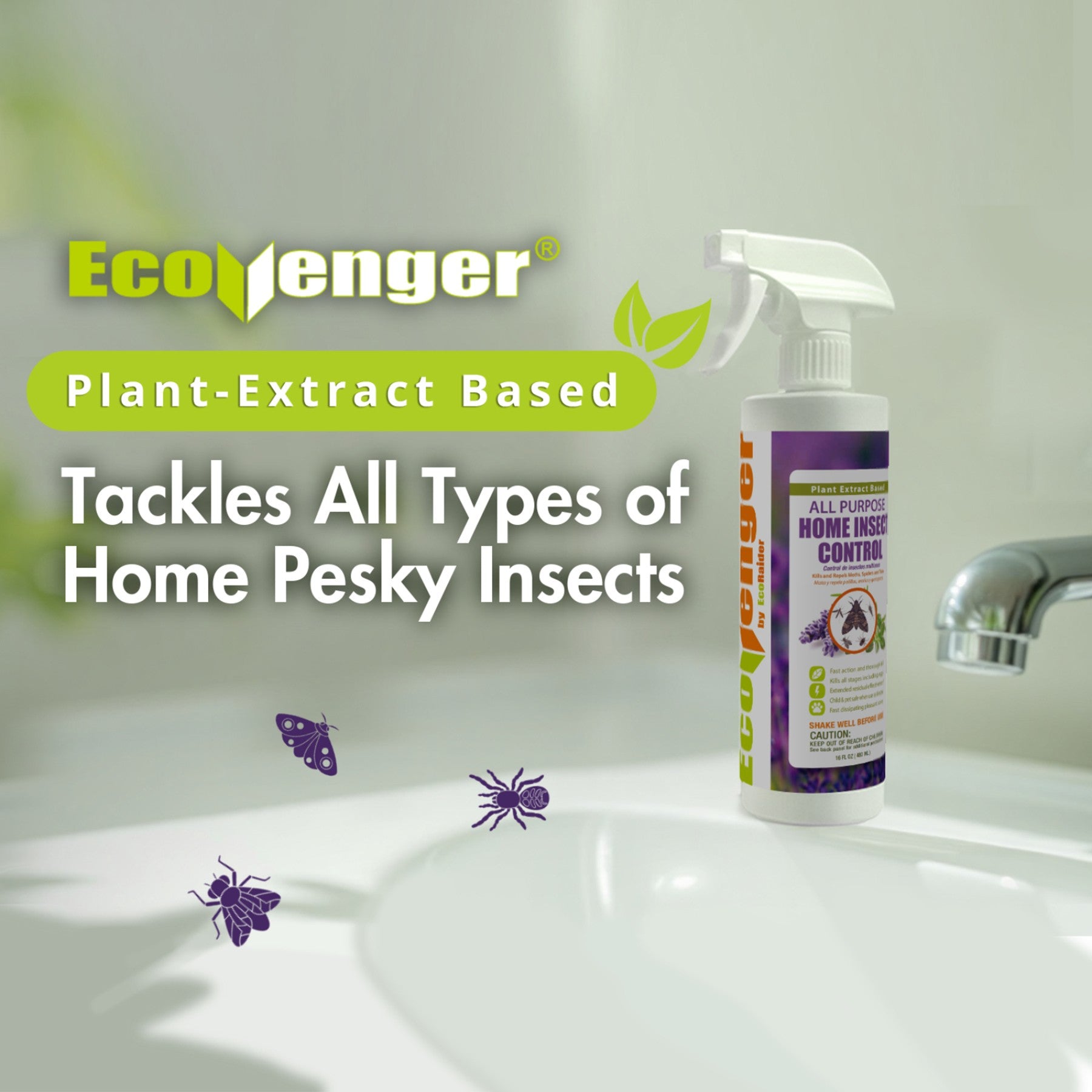 EcoVenger goes through strict examination by an EPA-authorized lab to ensure the whole formula imposes no toxicity in dermal sensitization, oral intake, skin irritation, eye irritation or inhalation. Therefore, the product can be safely used around children and the elderly. It is also pet, bird and fish friendly so you can use it almost anywhere with peace of mind. No need to vacate before spraying. No staining on most surfaces. Pleasant scent that dissipates fast!
