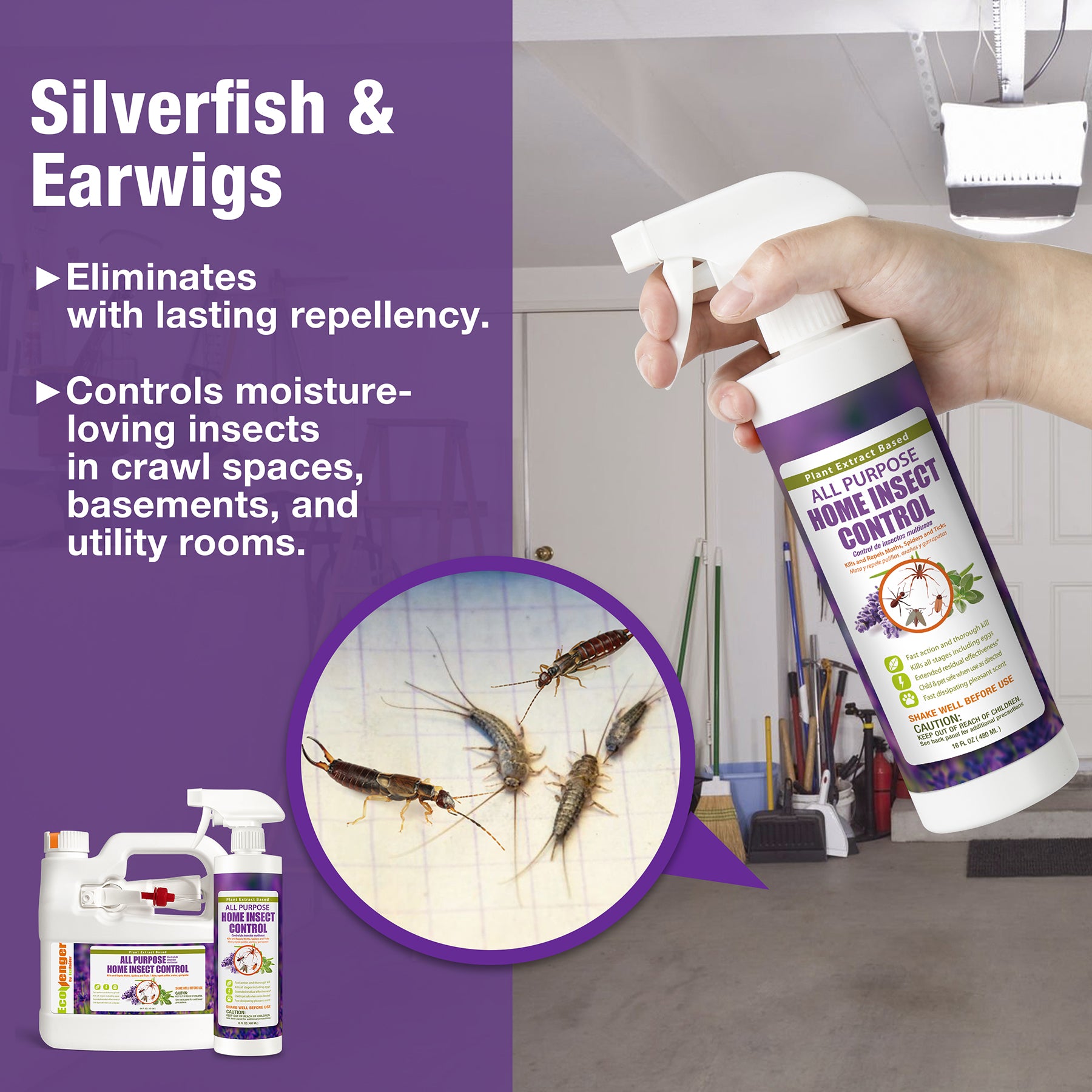 A versatile home protection tool against all unwelcoming bugs. This natural insect spray kills and repels invasive insects and provides continuous protection for your house. Kills flying, crawling, biting and stinging bugs and other common household insects including but not limited to cockroaches, spiders, flies, fleas, borers, dust mites, ticks, wasps, scorpions, mosquitoes, fruit flies, silverfish, and moths.