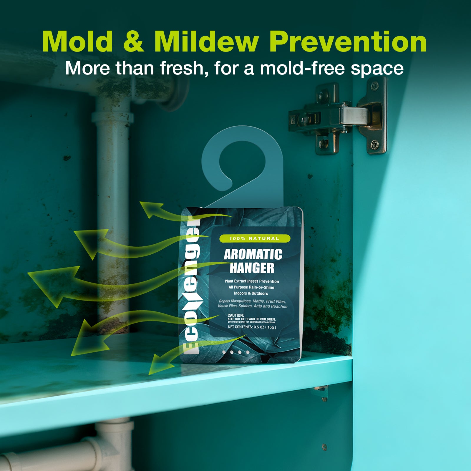 EcoVenger selects natural essential oils that provide the most potent, repelling effectiveness. Essential oils are carried by vermiculite that slowly releases vapor and creates spatial protective barriers. The packaging is designed to handle the weather and will remain durable throughout the lifetime of the Sachet. Indoors OR outdoors, it effectively deters multiple species of invasive insects, even rodents depending on the formula.